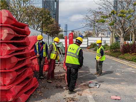 2月27日,因疫情形勢嚴(yán)峻,多地緊急封控管控,隔離圍擋設(shè)施緊缺,南山區(qū)城管局和深圳建筑業(yè)協(xié)會向在深建筑企業(yè)發(fā)出號召,廣泛征集水馬等圍擋物資,投入封控管控區(qū)使用。上午9時接到電話后,工勘集團(tuán)迅速行動,協(xié)調(diào)安排各項目立即籌集調(diào)撥水馬,送往蛇口大廈、蛇口劇院、蛇口沃爾瑪、望海路集中存放點等指定位置。