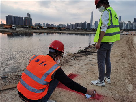 2月底,在香港抗疫形勢(shì)最為嚴(yán)峻的時(shí)刻,測(cè)量團(tuán)隊(duì)第一批趕赴現(xiàn)場(chǎng)。當(dāng)時(shí)的施工場(chǎng)地還是一片雜草叢生的荒灘,野豬成群,且時(shí)有蟒蛇、鱷魚出沒,野外作業(yè)環(huán)境異常惡劣、兇險(xiǎn)。且當(dāng)時(shí)場(chǎng)地尚未搭設(shè)臨建,測(cè)量人員的住宿被統(tǒng)一安排在市區(qū)酒店,即使冒著被疫情傳染的高風(fēng)險(xiǎn),他們依然選擇逆行而上。