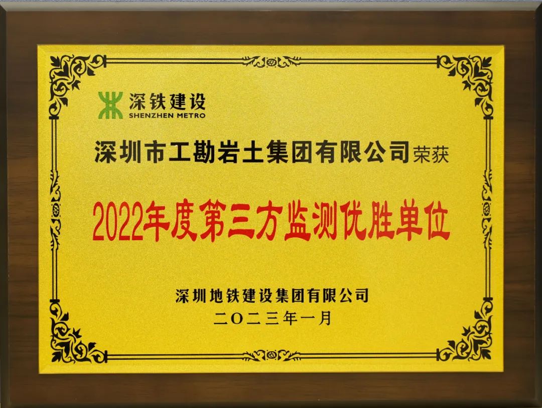 近日,深圳地鐵建設(shè)集團(tuán)有限公司公布了《關(guān)于建設(shè)工程施工總承包合同單位、第三方監(jiān)測及控制測量單位2022年度考核的通報》,工勘集團(tuán)以年度考核排名第一的成績獲評為“2022年度第三方監(jiān)測優(yōu)勝單位”。