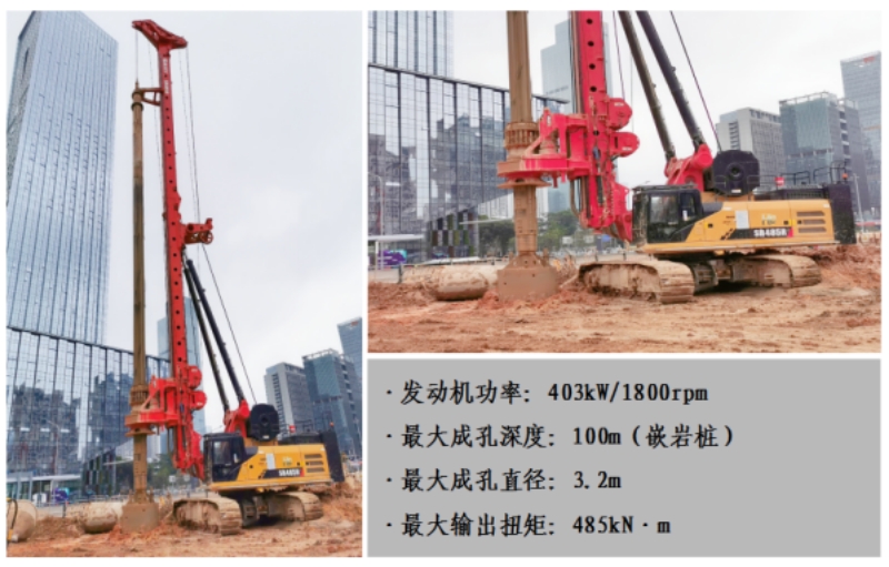 我司承接的深圳軌道交通13號線沿線項目,地質(zhì)條件異常復(fù)雜,深部巖層極限壓碎強(qiáng)度達(dá)180MPa,樁基礎(chǔ)施工難度極大。投入使用的三一SR485R憑借強(qiáng)大的機(jī)械性能支持,實現(xiàn)快速高效入巖,施工任務(wù)按期按質(zhì)按量完成,獲得合作方的一致好評。